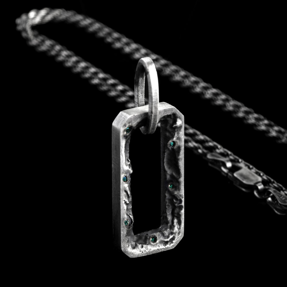 Ogni ciondolo è completato da una collana rope in argento ossidato, scelta per esaltare il contrasto tra luce e ombra, protezione e rivelazione.